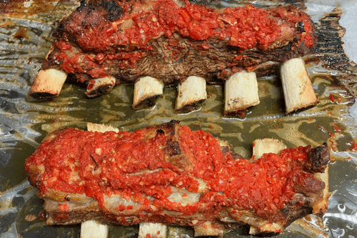Говяжьи ребра с острым томатным соусом