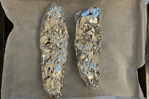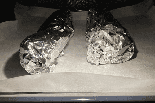 Достать из духовки через 1 час и развернуть фольгу.