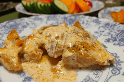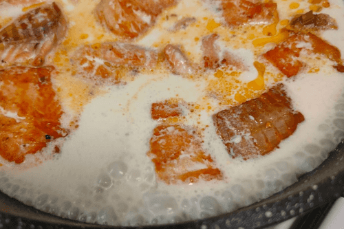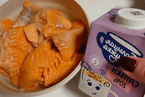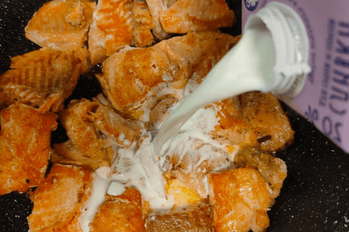 Семга тушенная в сливочно-чесночном соусе