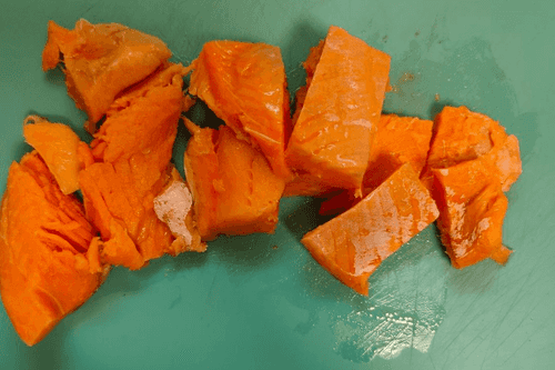 Семгу нарезать кусочками.