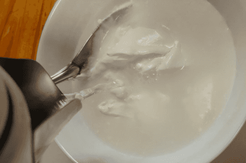 Смешать и отбить его. Посолить, добавив 1 чайную ложку соли.