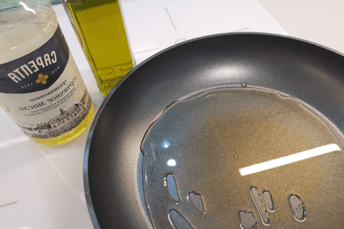 На сковороде разогреть два вида масла.