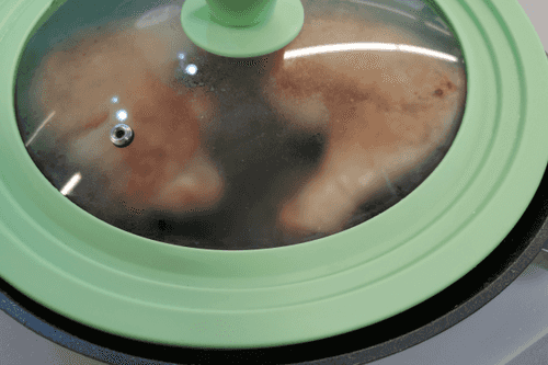 Накрыть крышкой и убавить огонь до среднего. Тушить около 10–12 минут, в процессе еще немного убавив огонь.