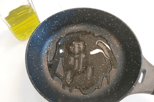На сковороде разогреть оливковое масло.