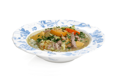 Добавить мясо утки и картофель, залить все это процеженным бульоном. Варить 15–20 минут.