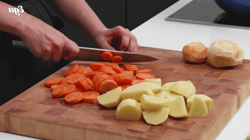 Морковь, картофель и репу нарезать крупными кусочками.