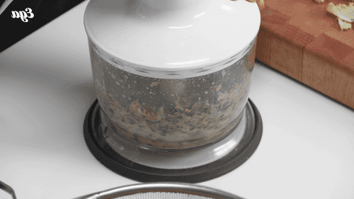 Тем временем измельчить чеснок, бекон, кайенский перец и петрушку в блендере. Добавить несколько половников бульона и сделать пюре.