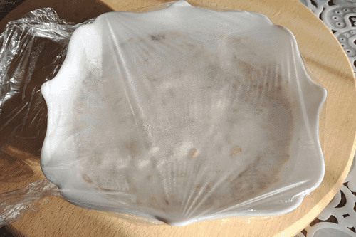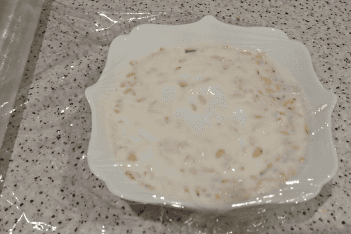 Утром достать овсянку из холодильника и снять пищевую пленку.