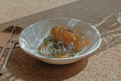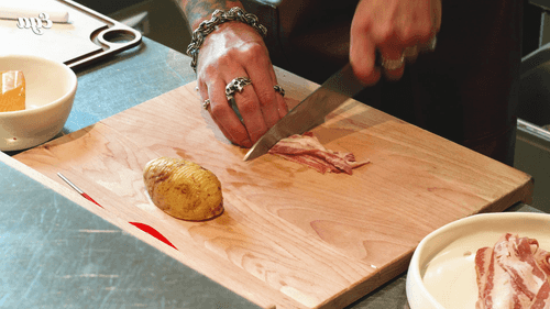 Хассельбак — шведское изобретение. Идея в том, чтобы подавать простые продукты вроде картошки, сельдерея или тыквы так, чтобы они выглядели максимально празднично. Для этого клубень или любой другой овощ подходящей плотности и размера эффектно нарезают гармошкой и вкладывают в эти разрезы начинку. Версия начинки от Михаила Курохтина, шеф-повара ресторана Midsummer, — говяжий бекон и копченый чеддер. Но в картошку-гармошку можно вложить, например, ломтики тамбовского окорока или копченого угря, а если хотите получить сугубо вегетарианское блюдо — то жареные баклажаны.