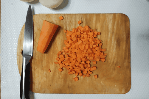Подготовить ингредиенты. Морковь, лук, чеснок вымыть и очистить.
