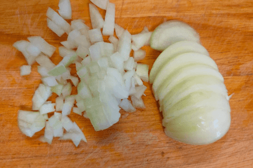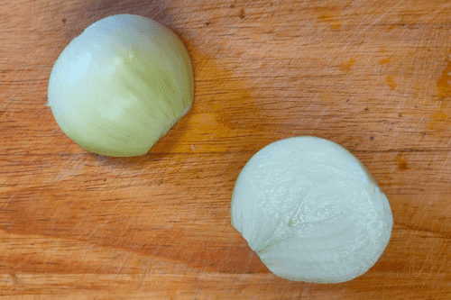 Лук очистить и разрезать пополам.