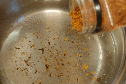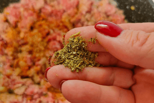 Пока фарш готовится, поставить кипятить воду, добавить в нее немного специй для мяса.