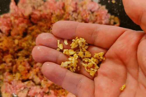 Затем нарезать вдоль и поперек, чтобы получились мелкие кусочки.