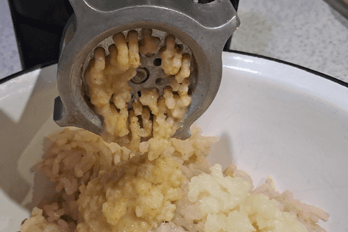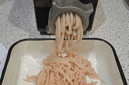 Пропустить филе рыбы через мясорубку.