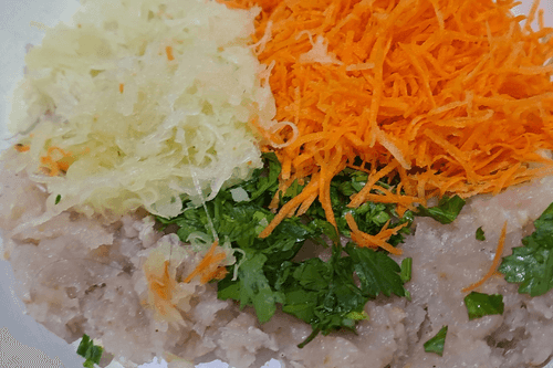 Фарш хорошо перемешать до однородного состояния.
