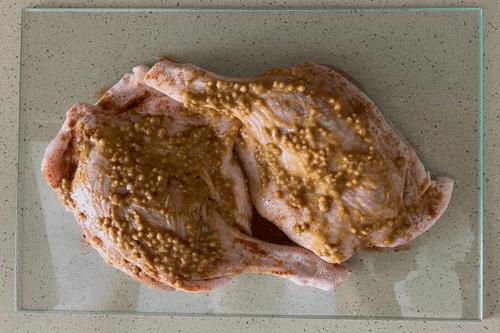 Нанести дижонскую горчицу.