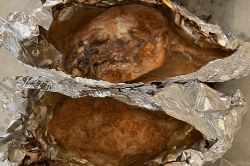 Достать из духовки и развернуть фольгу.