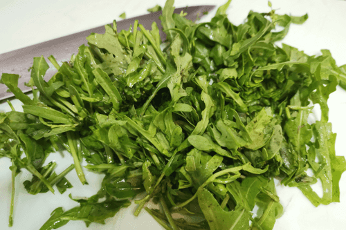 Нарезать руколу некрупно.