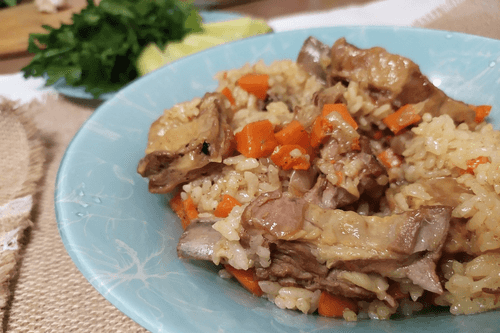 По готовности риса аккуратно перемешать плов. Блюдо готово к подаче.