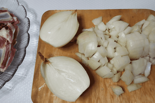 Баранину быстро обжарить с двух сторон на раскаленном масле на сильном огне.