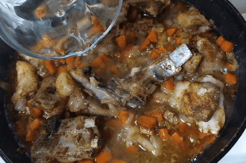 Влить в сковороду 1 стакан горячей кипяченой воды, тушить под крышкой на медленном огне 30 минут.