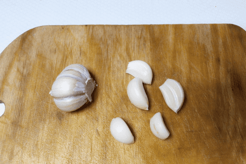 Пока вода еще не полностью выпарилась, минут за 7–10 до готовности плова, распределить дольки чеснока, утопив их в разных местах, по поверхности риса.
