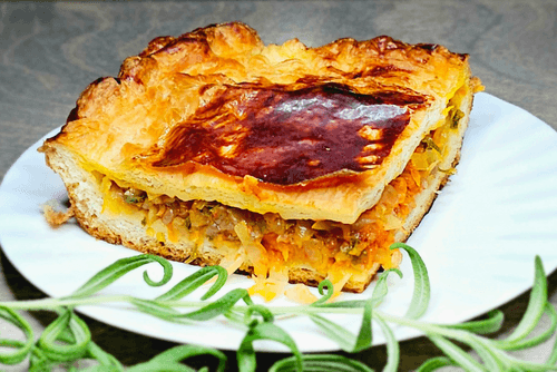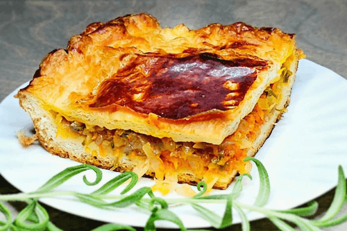Пирог с капустой – традиционное блюдо русской кухни, символ домашнего уюта и семейных застолий. Его история уходит корнями в старину, когда капустные пироги были популярны среди крестьян благодаря доступности ингредиентов. Вкус у этого пирога нежный, сочный и немного сладковатый благодаря сочетанию тушеной капусты, моркови и томатного соуса. Хрустящее слоеное тесто придает ему особую текстуру, а зелень и специи добавляют пикантности. Этот пирог идеально подходит как для повседневного обеда, так и для праздничного стола, особенно в сочетании с сметаной или ароматным чаем. Его удобно брать с собой в дорогу или подавать в качестве закуски. Истинное воплощение простоты и вкуса!