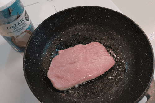 На сковороде разогреть масло и выложить стейк на сильный огонь. Посолить и обжаривать 2–3 минуты.