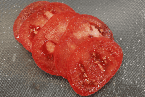 Выложить слайсы помидора.