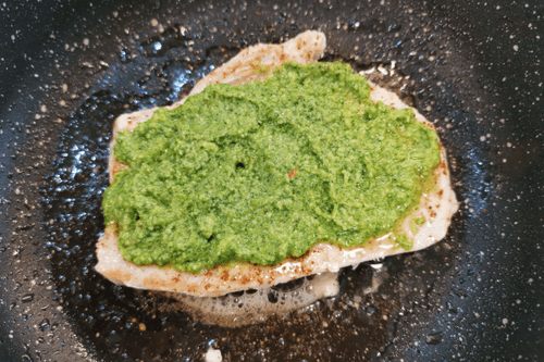 Сверху смазать соусом песто.