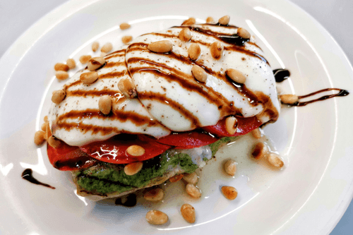 Стейк из индейки по-итальянски — воплощение средиземноморского вкуса и утонченной простоты. Этот рецепт гармонично сочетает нежное мясо индейки с ароматом песто, свежестью томатов и сливочной мягкостью моцареллы. Кедровые орехи придают блюду изысканную текстуру, а бальзамический крем — изящную кисло-сладкую нотку. Вдохновленный традиционной итальянской кухней, этот стейк напоминает о солнечных террасах Тосканы, где уважают свежие ингредиенты и насыщенные вкусы. Идеален как основное блюдо для романтического ужина или семейного застолья, он легко готовится и неизменно оставляет приятное гастрономическое впечатление. Сочный, ароматный, с легкими ореховыми и травяными акцентами, он подается горячим, позволяя каждому ингредиенту раскрыться в полной мере.