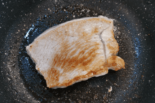 Разогреть на сковороде масло и выложить индейку на сильный огонь. Обжаривать 2–3 минуты.