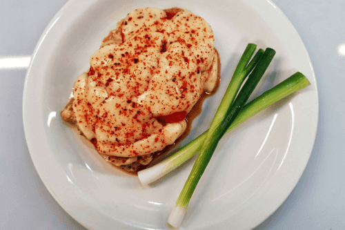 Выложить помидор на стейк.