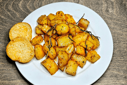 Картофель с розмарином и чесноком — простое, но элегантное блюдо русской кухни, дарящее уют и тепло домашнего очага. Запеченный картофель приобретает хрустящую золотистую корочку, а его мягкая сердцевина насыщается ароматами душистого розмарина и пикантного чеснока. Это сочетание придает блюду утонченный вкус с легкими древесными и пряными нотками. В России картофель всегда был важной частью национального рациона, а его запекание с травами и специями — традиционный способ раскрыть богатство его вкуса. Такое блюдо станет отличным гарниром к мясу или рыбе, но также может выступать в роли самостоятельной закуски, особенно в сочетании с соусами или сметаной. Идеально подходит для семейных ужинов, когда хочется чего-то простого, но невероятно вкусного.