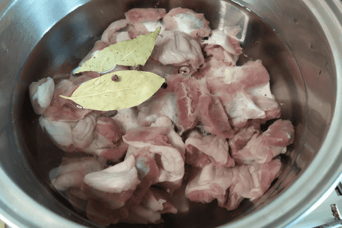 Отварить в подсоленной воде с добавлением лаврового листа и перца горошком в течение 30–40 минут до мягкости.