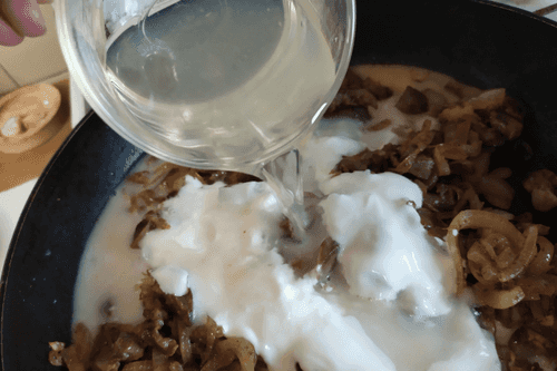 Оставить немного бульона, в котором варились субпродукты, для сметанного соуса.