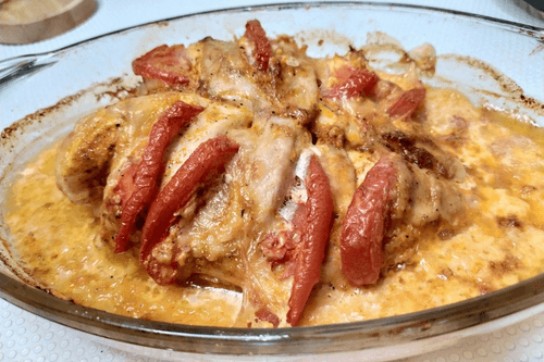 Куриная грудка с помидорами и сыром — это простое, но изысканное блюдо европейской кухни, идеально подходящее для семейного ужина или праздничного стола. Нежное мясо, пропитанное ароматной чесночно-майонезной смесью, приобретает удивительную сочность, а томаты добавляют свежести и легкой кислинки. Плавленый сыр создает аппетитную корочку, которая делает блюдо особенно привлекательным. Исторически подобные запеченные вариации мяса встречаются в итальянской и французской кухне, где используется сочетание томатов, специй и сыра для создания богатого вкуса. Готовится быстро, а результат неизменно радует даже самых взыскательных гурманов. Подача с зеленью или свежим салатом придает дополнительную нотку свежести, делая блюдо универсальным как для повседневного, так и для праздничного меню.
