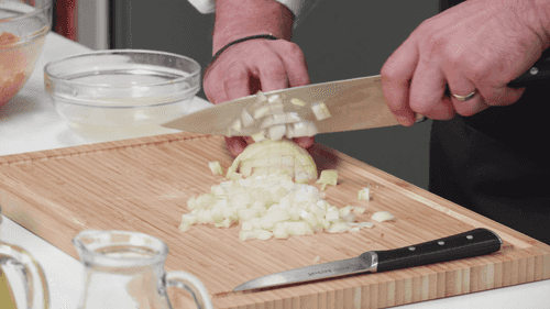 Лук нарезать мелкими кубиками.