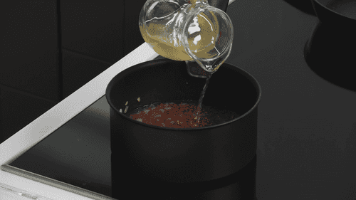 Залить гречку бульоном, довести до кипения, затем накрыть и отправить в духовку на 10 минут.