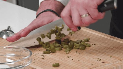 Очень мелко нарезать петрушку и огурцы.