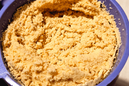 Отделить небольшими порциями и перемолоть еще теплые орехи. Миксер нужен мощный.