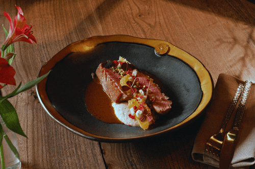 Утка, подаваемая с нежным пюре из сельдерея и топинамбура, является изысканным блюдом, прекрасно отражающим кулинарную философию шеф-повара Юрия Голоперова из ресторана Lark Café. Это сочетание не только радует глаз, но и поражает вкусовые рецепторы: сочное мясо утки гармонично переплетается с кремовой текстурой пюре, в котором яркие ноты сельдерея и сладковатые оттенки топинамбура создают великолепный баланс. Такое блюдо станет замечательным украшением любого торжества, добавляя изысканности и изюминки на стол.