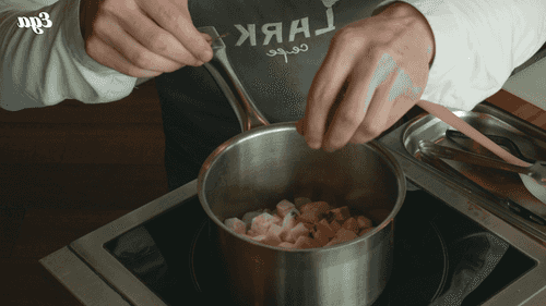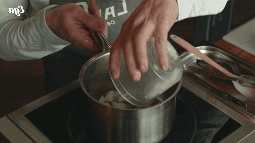 Добавить сливки, дать закипеть и снять с огня.