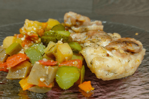 Куриные бедра с овощным гарниром — это гармоничное сочетание сочного, нежного мяса и ароматных тушеных овощей. Это блюдо, характерное для европейской кухни, вобрало в себя простоту приготовления и богатый вкус. Маринованные огурцы придают пикантность, а баклажаны и сладкий перец — насыщенность и мягкость. Томленые в растительном масле овощи раскрывают свой вкус, а чеснок добавляет тонкую остроту. Куриные бедра, обжаренные до золотистой корочки, становятся аппетитным центром блюда. Их дополняет овощная смесь, которая делает вкус ярким и сбалансированным. Такое блюдо идеально подходит как для уютного домашнего ужина, так и для праздничного стола, где оно будет радовать гостей своей простотой и изысканностью.