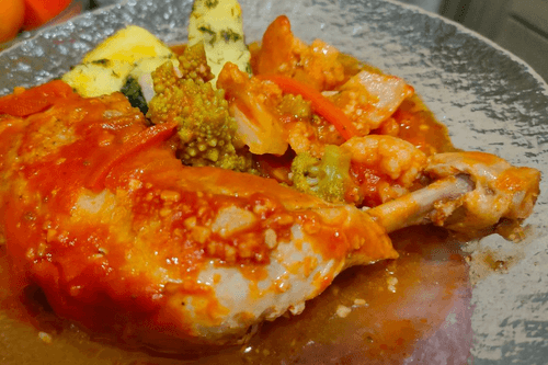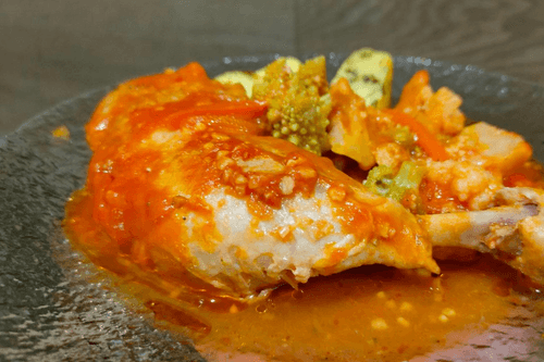 Куриные бедра, нежные и сочные, погружаются в ароматный томатный соус, обогащенный овощами и специями. Этот рецепт уходит корнями в традиции европейской кухни, где гармония простых ингредиентов рождает уютный домашний вкус. Легкая кислинка томатов оттеняет сладость овощей, а специи добавляют глубину и насыщенность. Блюдо идеально сочетается с гарниром из картофеля или риса, а его насыщенный соус делает каждую вилку по-настоящему запоминающейся. Это универсальный вариант как для будничного ужина, так и для семейного застолья, где хочется тепла и уюта. Приготовить просто, а вкус остается в памяти надолго.