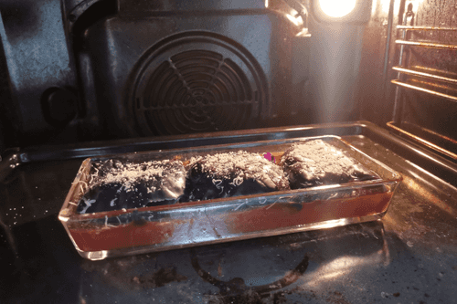 В форму для запекания вылить 0,5 стакана воды, в которой варилась капуста.