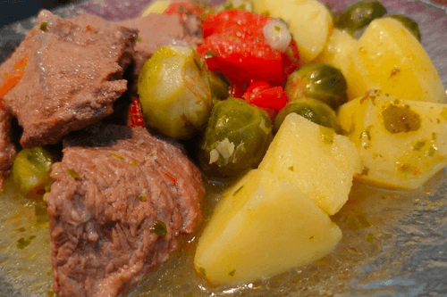 Говядина с овощами, тушенная в пиве, — это блюдо с глубокими корнями в европейской кухне, где сочетание мяса и пенного напитка давно стало классикой. Пиво придаёт мясу нежность и насыщенный вкус, а овощи дополняют его сочностью и мягкостью. Тушение позволяет ингредиентам гармонично соединиться, образуя ароматное блюдо с богатым, слегка карамельным привкусом. Картофель и брюссельская капуста добавляют текстурное разнообразие, а зелёный лук освежает общий профиль вкуса. Такое блюдо идеально подходит для уютных семейных ужинов или дружеских посиделок. Подаётся горячим, прекрасно сочетается с ржаным хлебом или салатом из свежей зелени, создавая теплую и насыщенную гастрономическую атмосферу.