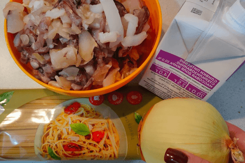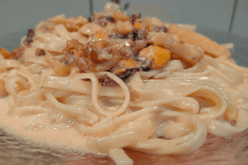 Спагетти с морепродуктами – изысканное блюдо, сочетающее итальянскую утонченность и богатство морских вкусов. Этот рецепт пришел из средиземноморской кухни, где свежие морепродукты соединяются с нежными сливками, создавая гармонию вкуса. Ал денте спагетти идеально впитывают сливочный соус, обогащенный ароматом лука и морепродуктов. Легкая солоноватость, нежность морепродуктов и мягкость сливок делают это блюдо универсальным – оно подойдет как для романтического ужина, так и для праздничного стола. Каждая порция дарит ощущение свежести морского бриза и тепла солнечного побережья. Подается с белым вином или свежими травами для усиления вкусовых акцентов.