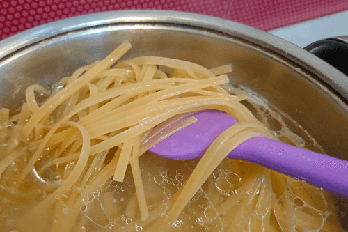 К почти готовым макаронам добавить растительное масло и доварить до состояния аль денте.