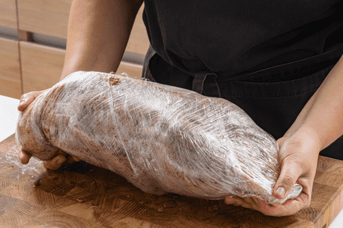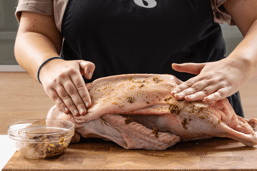 Обернуть гуся пищевой пленкой и убрать мариноваться в холодильник на 8 часов.
